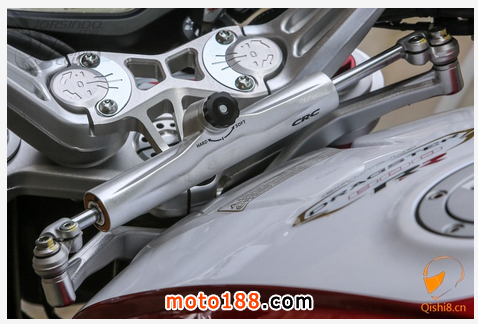 為了提升穩定度,DRAGSTER 800RR則在龍頭上加裝了CMR防甩頭