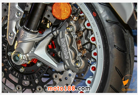 煞車卡鉗則采用的是BREMBO對四輻射卡鉗,提供絕佳的煞車力道
