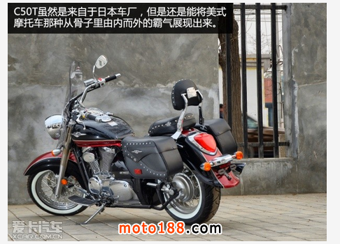 編輯點(diǎn)評(píng):我們所拍攝的C50T為2013年日本進(jìn)口的車型,目前特惠價(jià)12.8萬元。以它的做工用料而言,算得上是物超所值了!整體而言,C50T雖然是一輛充滿男子氣概的美式巡航車,但是鐵漢也有細(xì)膩的一面!此車在細(xì)節(jié)展現(xiàn)出日本車廠慣有的細(xì)膩,造工、模具的細(xì)致度都屬上乘之作。而且,在質(zhì)量的優(yōu)勢(shì)之外,日本的美式巡航車在外形上也越來越有美式風(fēng)范,看起來不再像是四不像的仿制品。或許,C50T是給那些注重質(zhì)量,卻又喜歡美式風(fēng)格摩托車的車主,一個(gè)最佳的選擇!