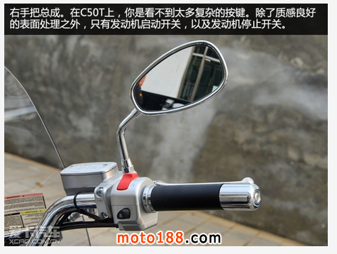 坐高僅有700mm的C50T,帶來了相當(dāng)舒適的乘坐感受。1.8米的騎士可以輕松地將雙腳同時(shí)平貼于地面,也給騎士安穩(wěn)的感覺,畢竟這輛車的重量高達(dá)277kg,若是不能“腳踏實(shí)地”的騎車,對(duì)于騎士的心理壓力可是不小。