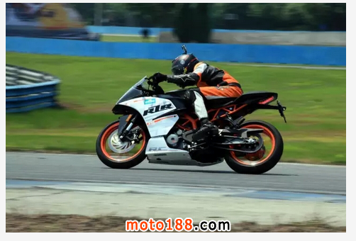 賽道試駕后倪巍點評KTM的RC390:在如今所有車廠都在跟風流線型外觀的時代,KTM依然堅持著自己傳統的切割面外觀設計風格。車頭的搭配顯現了KTM最新一代跑車的設計理念。使用了雙透鏡的前大燈和面積更大的導流罩有機玻璃。這種外觀極具個性,整車識別度非常高。RC390騎來特別輕盈,適合小型賽道使用。輪胎非常抓地,但后減震回彈阻尼有提高的空間。發動機的中低扭矩令人滿意,轉速7000r/min就達到了峰值。而且轉速超過這個區域后,發動機的高轉速區表現仍然從容。這款單缸發動機的設計非常適合賽道中的駕駛。可腳踏位置偏低,賽道使用時建議換裝升高腳踏。單缸車在高轉速區域傳導出的震動較大。超輕的自重,再加上超薄的車座和分體式低位車把,讓人很自然的呈現出了戰斗化得駕駛姿勢。駕駛中會感覺比同級別都市型跑車更激進。