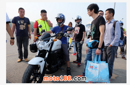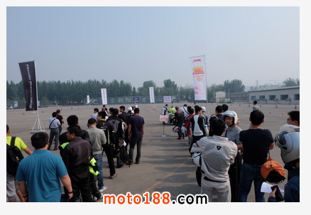 5月24日一早,離活動開始還差1個小時,現場正在進行布置工作時就已經有車友提前趕來想要進行試駕,工作人員們表示活動還未開始時他們才醒悟過來:“不好意思啊,等不及了。”上午8:30分,試駕大會正式開始,據天氣預報顯示,當日北京的氣溫將高達32℃,炎熱的天氣并沒有削弱車友們對這場試駕會的重視程度,成隊的車友們陸續涌入,一陣陣引擎的轟鳴聲在不斷響起,頗具聲勢的場面給這場活動譜寫了一個絕好的開頭,所有人都相信這將會是充滿激情的一天。本次試駕會亮點繁多,首先是能夠自由試駕十余款的市場主流的大排量車型:HONDA DREAM WING(北京)提供了5輛排量500mL及以上的摩托車,除此之外,北京“風火輪”除了提供意大利經典品牌MOTO`GUZZI V7和3款VESPA車型意外,更帶來備受關注的KAWASAKI VERSYS650首次提供試駕,對于愛好進口大排量摩托車的車友們來說來說每一款都是心頭愛,此次更是“愛”了個全面。