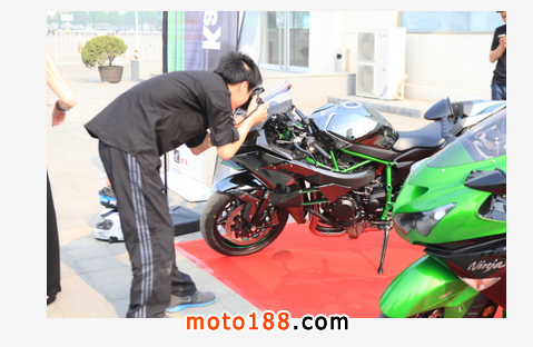 除了試駕車型外,展示區的5輛公升級大排量摩托車也是此次活動的另一個亮點:HONDA展示出 CBF 1000、VFR1200 和GL1800C。GL1800C的出現吸引了摩友們的眼球,紛紛與他們的“北歐女神”合影拍照。當天KAWASAKI給了大伙,包括工作人員在內的所有人一個大大的驚喜,原本沒有在展示列表上的KAWASAKI NINJA H2R突然出現場引起了一陣不小的圍觀。盡管規定H2R既不允許試駕也不允許乘坐,但這款售價72萬元的天價摩托車依舊成為全場的焦點,更有車友表示:“這輛車摸一摸也知足了。”