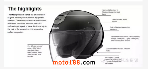 M1同樣提供5種不同的遮陽(yáng)板顏色以供選擇。除了標(biāo)準(zhǔn)的遮陽(yáng)板外,還有高透版、透明黃,鏡面銀或鏡面藍(lán)四種顏色可選。所有的遮陽(yáng)板都符合最新的歐洲太陽(yáng)鏡標(biāo)準(zhǔn)。