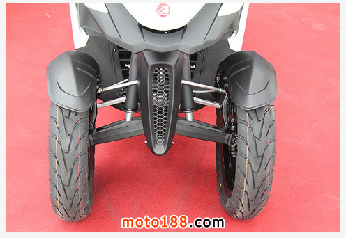 既然是前2輪設計,那麼會不會存在有輪胎定位與保養的問題? 答案是會的,根據原廠提供的建議,車主每5,000公里或定保時,可以回到經銷商進行校正的作業,讓前輪行駛更安全。3D-350的其他外觀亮點還包括仿賽六爪式輕量化鋁圈、獵鷹式LED魚眼大燈、加厚坐墊與大型置物箱等。
