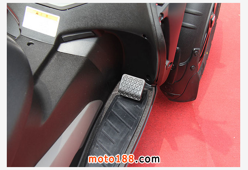 煞車踏板位於前座右下方,踩下後會透過CBS系統,分配前70%後30%的煞車輸出力道。