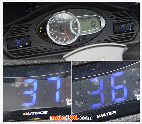 3D-350儀表板可顯示引擎轉速、車速、加油、保養、引擎燈號外,還增加有「P」停車燈號,以及環境氣溫及水溫數位計,增添不少實用性。
