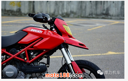 全紅的車身,全紅的車臺,這樣的搭配,也是二戰后從意大利波隆那崛起的機車制造商 DUCATI 最大的企業識別標志,旗下車款都是許多車迷騎士朋友們最愛,不論是具有傳統街車氣息的 Monster 車系,或者是在WSBK戰場上以及MotoGP戰場上透過資料回饋而研發出來的 1199 Panigale,又或者以跑車為主結構,將整流罩拆掉并重新設計外觀的 Streetfighter 車系,以及內含著滑胎車精神的 Hypermotard 車系,都是 DUCATI 這間廠商諸多車系廣為人知的一部分,而今天要介紹的車款,就是源自 Hypermotard 1100 車系,搭配較為平易近人803c.c.引擎的 Hypermotard 796。