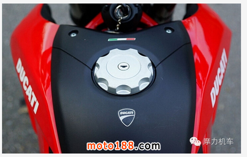接著看到油箱側面與車頭線條呼應的側蓋,上方的 DUCATI 字樣依然能夠吸引車迷朋友們的注意。