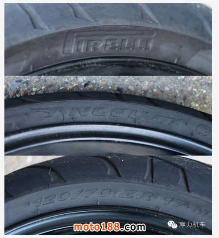 在輪胎的選擇方面,車主選擇歐洲知名大廠 Pirelli 的 ANGEL GT 休旅胎,規格則是 120/70 ZR17,車主表示耐磨程度還算中上,目前已經使用七千多公里,前輪胎紋依然還有1/3厚。