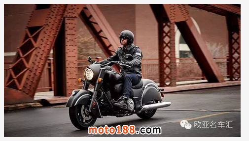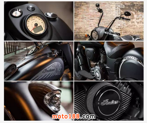 第安2016款酋長(zhǎng)“黑馬”(Indian Chief Dark Horse )于芝加哥國(guó)際摩托車展上正裝亮相,除局部配以金屬電鍍件外,周身啞光黑色涂裝將黑馬的神秘感提升到極致。
