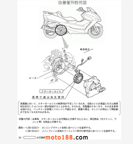 yamaha 于六月十六日發(fā)布, YP250、WR250r、WR250X 召回訊息主要原因是發(fā)電機(jī)(電盤)絕緣材過厚,引起散熱不良,可能會導(dǎo)致發(fā)電機(jī)故障車輛無法發(fā)動。召回處理部分是更換全新的電盤。