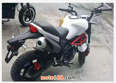 隨銀鋼華北區(qū)銷售經(jīng)理杜總進(jìn)入銀鋼廠區(qū)考察,無(wú)意中發(fā)現(xiàn)一輛十分討人喜歡的小車。乍一看,這車有點(diǎn)相似DUCATI的新款MONSTER系列,但仔細(xì)觀察后發(fā)現(xiàn)只有油箱和大燈比較相似,其他地方都是不太相同的。