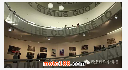 寶馬博物館展廳設計為環繞式的空間,按照不同年代和時期,展示出歷年來所產的各類寶馬汽車、寶馬摩托車、輕騎和一些特殊用途的車輛樣品,并運用現代聲、光、電、多媒體等高科技手段及圖片音像資料,提升產品展示的藝術空間,全面演繹了寶馬汽車公司的成長與發展史。