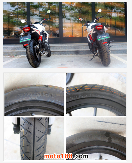 新貝納利BJ300GS增配擋位顯示、倍耐力天使寬幅輪胎、改進車架及后搖臂、后腳踏總成(但是后兩項改進從嚴格意義上講不能劃入增配的行列),價格也從老款的24800元調整到26800元。和大家算一筆賬:BJ300GS所配置的倍耐力天使ST輪胎購置費用約合2000元(不含運費、安裝費以及動平衡等費用),增加了擋位顯示,改進了大部分設計“瑕疵”,所以大培子個人認為26800元的價格雖不算是物超所值,但也說得上是價格公道。