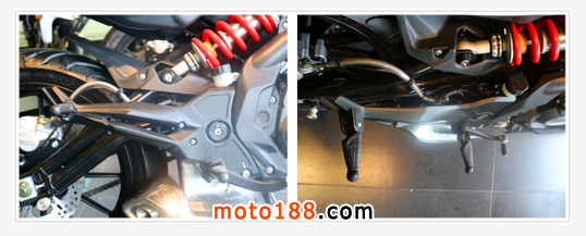 老款BJ300GS的后腳踏由于設計結構問題,車輛發生側倒便有折損的可能。大培子發現這在新BJ300GS身上也得到了改進,新BJ300GS的后腳踏總成被重新設計,相信因倒車而折損后腳踏的問題將得以緩解。