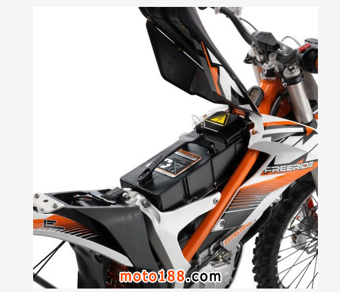 Freeride E電動機(jī)的最大馬力21.5匹,最大扭矩是42牛米,F(xiàn)reeride E車重92.5kg,F(xiàn)reeride E擁有很大的功重比,加速性、可玩性絕對超乎想象,不管是上山蹦溝還是城市里爬樓梯,F(xiàn)reeride E都能輕松完成。其電池為電機(jī)供電的電壓為380伏特,超過人體負(fù)荷安全電壓,所以在駕駛Freeride E的時候要注意使用安全。