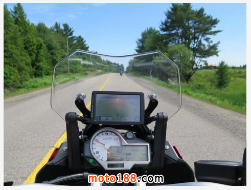 在非鋪裝路面上才是XR真正的用武之地,相比S1000R更長(zhǎng)的懸掛行程和軸距,XR在顛簸路面的行駛依舊非常穩(wěn)定,當(dāng)然這套電子懸掛系統(tǒng)功不可沒(méi);此外更寬的車(chē)把也讓駕駛者的操控更加輕松。前風(fēng)擋擁有兩個(gè)可調(diào)的位置,并且不需要工具;右側(cè)有個(gè)12V的電源接口,這個(gè)配置現(xiàn)在是非常有用的。