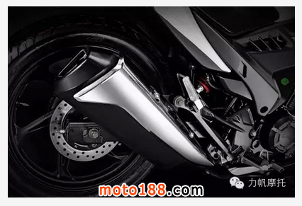 機車外表極富肌肉感,采用的分體式高低坐墊不僅能滿足騎乘者的舒適感,而且能夠使KPR在生活和比賽不同模式下的自由切換,以便在比賽中達到最佳空氣動力特性。此外,300mm超大碟剎盤,37mm加粗前減震,異形斷面結構排氣管以及犀利的LED尾燈都讓KPR150散發出迷人的氣息。