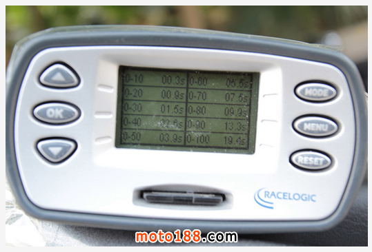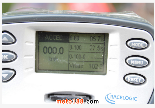 另外值得一提的是, KA125在豪爵官網上公布的0-50km/h加速數據為4.76秒, 但試車組分別以Dbox測速儀器測試, KA125/150的0-50km/h加速則為3.9秒。這在同級別國產車的實測中也是比較好的。兩車的加速數據比對分析, 我們會在后段的文章中再詳細進行說明。