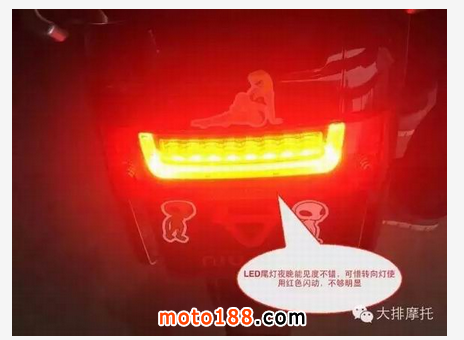 后轉向燈有設計缺陷,竟然用剎車燈的紅色閃動提示,有安全隱患(黃色閃動更合適)