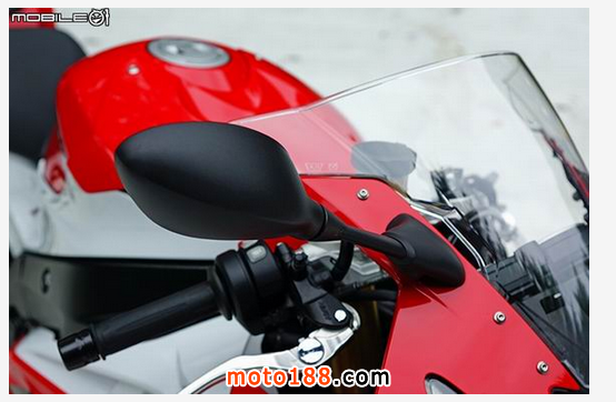 后照鏡則是采用可收折外調式后照鏡面,調整范圍還蠻大,視角也很清楚,不至于看不到后方;原廠說明書內更有教導車主,在賽道騎乘時如何將后照鏡拆下,可讓賽道騎乘時更安心更有競爭力。
