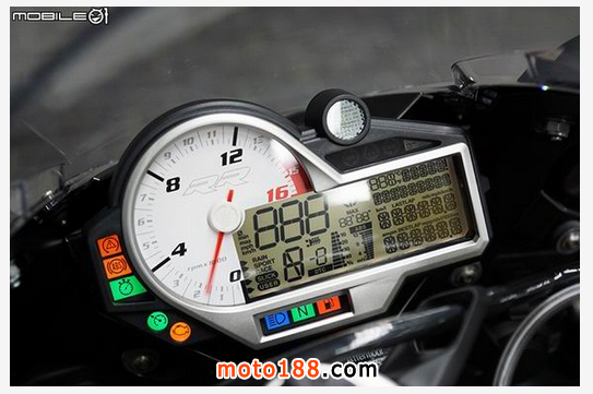 儀表板部分充滿許多顯示資訊,包含基本的轉速表、時速表、超轉燈及 DTC / ABS 故障燈、單圈最快提示燈、定速啟動提示燈、引擎故障提示燈、遠燈提示、空檔提示燈及最后的燃油油量過低提示燈,儀表板數碼顯示區域實在太多功能,待會將在下面給大家進行介紹。