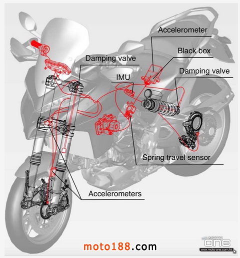 ●由兩個加速計Accelerometers感應器及IMU收集車身俯沖、傾角數據,讓避震在行駛時不斷作自我調校最佳的吸震效果。