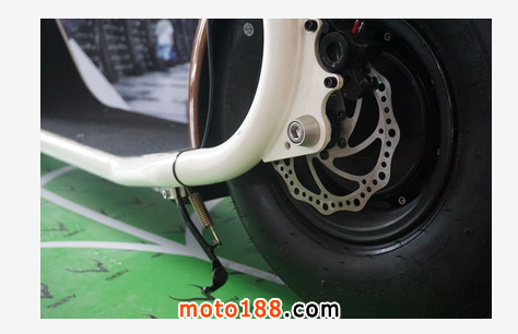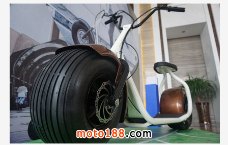 Citycoco的與眾不同的外觀主要表現在兩大方面:首先是兩個超級大的車胎,直徑為18英寸,寬度高達9.5英寸,停放的時候甚至不需要打開車梯就能屹立不倒,要知道一般的汽車輪胎也不過這個尺寸,將它用在這款“類摩托”的產品身上是有多么霸氣。