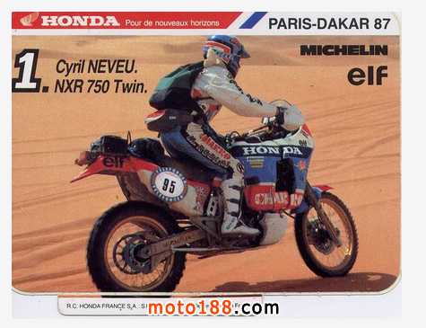 ●80年代,HONDA制造純種越野冒險戰車NXR750V,其後制造更大排氣的NXR800V,參加全球最艱難的達卡(達客爾)拉力賽,一鳴驚人的HONDA創造1986-1989的4連冠神話。