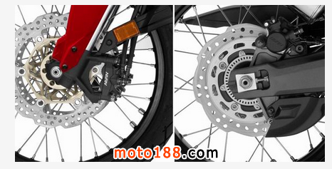 核心提示: ●與近年流行采用前後17寸街車輪框的多用途冒險車不同,配備前後21寸及18寸正宗越野輪框的Honda CRF1000L Africa Twin,是真