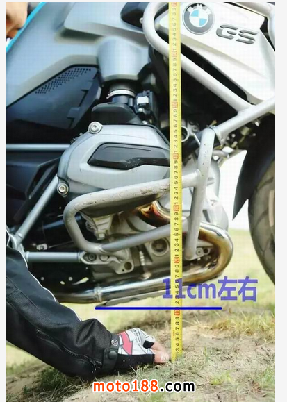 通過兩組對比可以看到“水鳥”有著11cm左右的離地間隙,成績似乎不錯,V-Strom 1000也有著9.5cm的離地間隙,在路況較為復(fù)雜多變時通過性也算說的過去。在測量完成以后,“水鳥”在坡起時,再一次因?yàn)橹亓康脑颍筝喩钌畹南萑肷惩林?hellip;…