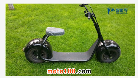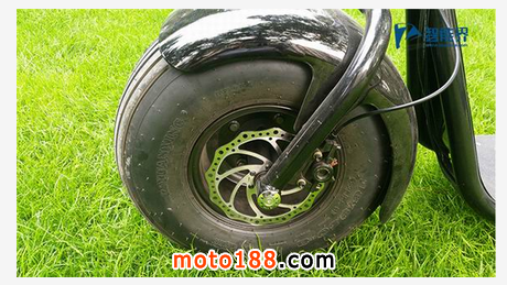 外形的設計,是產品的一大亮點。酷似哈雷摩托的外觀造型,也為其吸引了無數的目光和眼球。所以產品最令人眼前一亮的地方,還是要屬于前后兩個超大的輪胎。兩個直徑為18英寸,寬度為9.5英寸的超寬直紋真空輪胎,著實將我們震撼了一把。要知道一般汽車輪胎的尺寸大小也不過如此,而在我們對比之后,發現Citycoco的輪胎還真是和普通汽車的輪胎旗鼓相當。