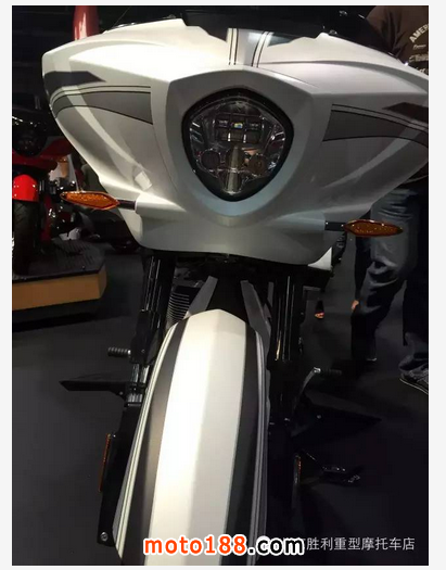 印第安展區一側是勝利展區,和印第安一樣目前展示車型均為美版銷售車型。讓人驚喜的是美版維加斯的輪轂、車身漆面、大燈均有所改變,槍手、刺客的顏色配置較今年沒有變化。