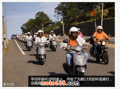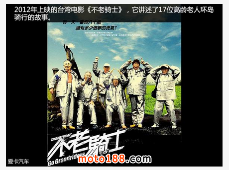 可能很少有人欣賞過這部影片,我先大致介紹一下主要劇情:故事發生在2007年的臺灣,17位平均年齡為81歲的老人,開始了為期13天的騎摩托車環島旅行,總路程約1178km。在他們之中,有人曾經患有癌癥,有人高血壓,還有人需要帶助聽器,雖然一路波折不斷,但他們最終完成了這趟不可思議的旅程。