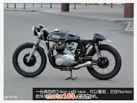 此外,有些比賽選手會將兩臺不同品牌的摩托車整合到一起。比如,他們會把Triumph的發動機,安裝到Norton或者BSA的車架中。或把Norton發動機安裝到Vincent中。因此出現了一些如Triton、Tribsa、Norvin等奇怪的稱謂,其實是把兩個摩托車品牌的部分字母拼湊在一起,以彰顯這臺車的身份。要知道,能做到這點的人,是要有一定經濟實力的。