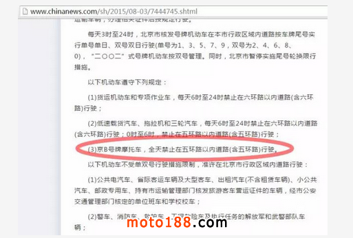 但有一條是針對于京B號牌摩托車制定