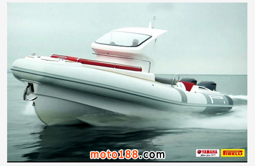 Pirelli PZero 1100 Cabin是一款適宜與短距快速航程的運動型橡皮艇。船體和甲板的設計秉承著輕型、穩固和耐用的原則。而管道則增加了浮力儲備,并更好地控制傾斜度。雖然船的外觀圓潤而充滿動感,但在甲板下的走廊和洗手間仍能有足夠空間讓人直立,而駕駛艙更能容納6人。在管道上和船體中央,運用了倍耐力PZero輪胎的元素。儀表盤能絕佳監測所有設備。正如摩托車一樣,我們需要挖掘出其裝備的所有技術。倍耐力PZero 1100 Cabin的排水量為4169立方厘米,可以搭載雙外置雅馬哈F300 V6 24門300馬力發動機。根據其船身268千克的重量,功率重量比為1.1千克每馬力。