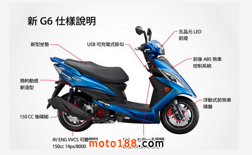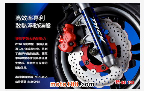 除此之外,新G6還配備頗受好評的SSC水平上懸掛,德國Bosch的9.1M ABS系統,新的浮動式碟盤。