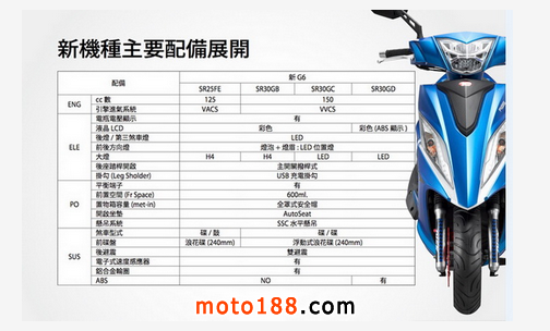 其次,LED大燈也是一個新的嘗試,目前國產速克達除了AEON的ES 150之外,新G6也跟進了LED大燈系統。