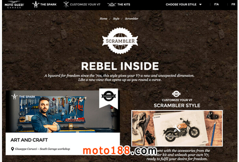 以現(xiàn)行的Moto Guzzi V7為基礎,加上了個性元素和復古的70年代潮流與顏色, 推出了MotoGuzzi Scrambler