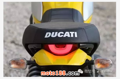 這次,我們手上拿到的Scrambler 黃色I(xiàn)con。先從外表上來看,毫無疑問,Scrambler繼續(xù)繼承了杜卡迪摩托車做工扎實(shí),用料上乘的特色。那些看上去是金屬材質(zhì)的部件,用料也都是金屬,絕非合成材料。比如,排氣管防燙蓋,油箱,品牌標(biāo)志,齒帶防護(hù)蓋等都是金屬材質(zhì)的。除了用料以外,加工的工藝也是用盡了心思。隨處都可以看到精心修飾的焊縫,還有奢華的座椅,LED的大燈。意大利人對細(xì)節(jié)美的追求,在這部車上得到了完美的展現(xiàn)。但是光有靚麗的復(fù)古外表和外在的做工并不能代表這是一部出色的摩托車。關(guān)鍵還在于它的騎行感受和性能表現(xiàn)。