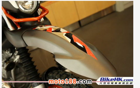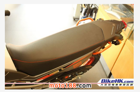 車身那個仿似迷彩的色塊,當中更隱藏了「SEROW 250 30th ANNIVERSARY MOUNTAIN TRAIL」的字句。車身多個護架/手挽位都用上橙紅色,跟輪圈互相呼應。