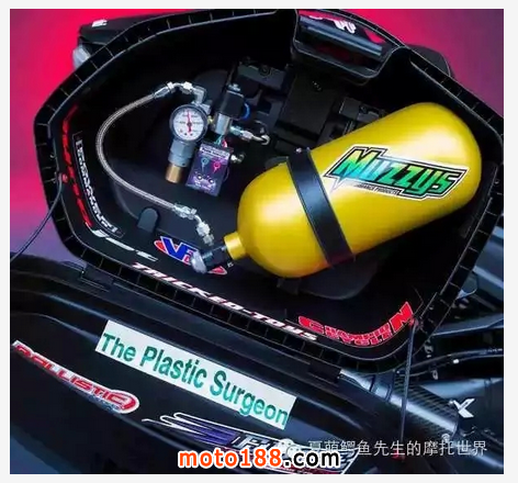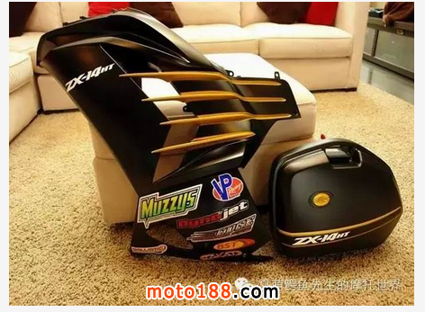 老爺子隨后的做法讓鱷魚也覺得瘋狂。盡管最終的目標是拿來摩旅美國,這輛爆改后的ZX-14R唯一一點像旅行車的地方就是那兩個硬殼邊箱。你以為邊箱是拿來裝洗漱用品的?錯了,老爺子的右邊箱裝的是一套可以增加50馬力的Muzzy氮氣系統!