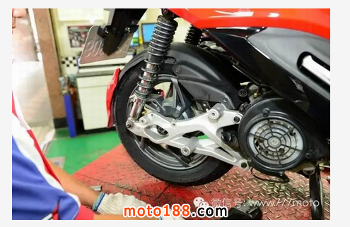 我們委托永和SBC 店家:廣固車業(yè)進行安裝,SYM 原廠配胎為前后皆為120寬度,而Michelin 提供給我們的尺寸為前120、后130,后輪寬度稍微增加,在安裝上JET S 時,需要稍微調(diào)整后土除,很快地就調(diào)整完畢,讓我們能順利上路。