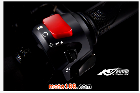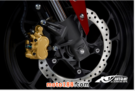 整車裝備: 1、暴鋒眼CB190R是首款全LED的摩托車,全車沒有一個燈泡。LED的壽命是燈泡的50倍,按照一天2小時,一周7天的使用頻率來講,可用將近7年的時間。 2、手把操作按鍵顯示,采取汽車級LED發光顯示,有白天和黑夜兩種模式 ,雖然在汽車上比較普遍,但是在摩托車上使用卻是一次。因為在這樣小的一個開關內加入足夠的光源,要保證發光均勻的同時還要保證其防水、防銹的性能,這真的是一件非常困難的事情,這也是本田二輪有史以來的第一次。 3、儀表設計成有新意的白字負顯模式,在背光顏色的選定中,為了在白天看得更清楚,在多種顏色中最終確定了深藍色,看上去深沉中又帶有優雅。 4、底盤設計中,特別開發的子午線輪胎實現了輕量高剛性,配合此級別最大的寬胎尺寸,優化了轉彎性能以及外觀造型; 5、倒立式前減震的采用,讓前側剛性得以提升,旋轉性能也得到加強。 6、采用大直徑波浪型剎車碟,提高了冷卻性能,使剎車距離更短,也讓外觀造型更為炫酷。 7、隱藏式短消聲器、隱藏式后扶手等等的裝備細節 ,都是針對亞洲人的人體工程學而設計的。