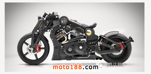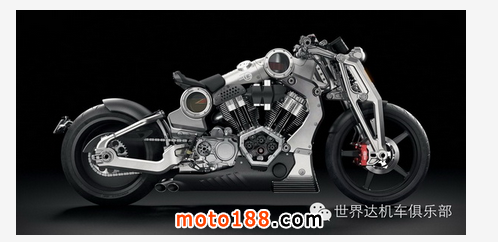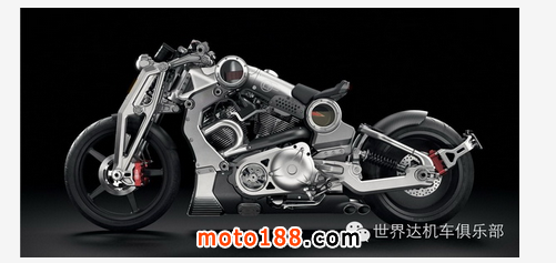該車采用一副風(fēng)冷(帶油冷裝置)V 型 56 度雙汽缸的發(fā)動機(jī),排汽量 132 立方英寸(2,163 cc),最大馬力輸出達(dá)到 200 匹。發(fā)動機(jī)與整個車身的主體材料是以美標(biāo) 6061 航空鋁、再以 CNC 數(shù)控加工制作而成,外觀造型采用了一個極為激進(jìn)的裸露金屬肌肉設(shè)計,以小量的碳纖組件作為襯托,而讓人過目不忘的還有那巨大的 240/45ZR-17 后輪胎。