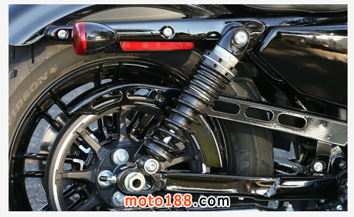 2016款883——所有新款Sportster——都更換了新的懸掛系統,新的前叉相比老款車型變的更加硬朗,在全力剎車的時候改善了“點頭”的現象。后輪減震同樣進行了重新設計,根據哈雷設計師Ben McGinley的說法,哈雷從最近的客戶反饋了解到懸掛是最受客戶抱怨的,因此這次的改款重點都集中在了懸掛系統。