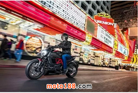 即使 Diavel 魔鬼車系和其它車系一樣具有輕量化的設計以及靈敏的操控性能,但它依舊是所有車系中的翹楚,因為它將人與摩托車的關系拉到一種最平衡舒適的狀態。在技術方面, Diavel 魔鬼車系搭載最新的 Testastretta 11° 雙火花塞引擎,并且標配 ABS 防抱死系統, DTC 杜卡迪牽引力控制系統,三種不同的騎行模式(運動、旅行、城市)讓車手可以靈活應對不同路面和交通狀況,并且可以根據個人的實際情況做出最適合的動力輸出和安全模式的調節。在車輛設計方面,162 匹馬力以及 205 kg 的車身重量(魔鬼碳纖版和鈦合金版)足夠激發出杜卡迪摩托車最純正的原始動力以及前所未有的騎行舒適度。要實現動力與外形的完美結合,精準的設計必不可少,巨大的 240mm 后胎以及杜卡迪特有的底盤設計,使駕馭者無論是在運動騎行中或者巡航狀態下,都能制造出令人興奮的操控感和難以置信的彎道角度。2015 款 Diavel 魔鬼 Testastretta 11° 傾注了杜卡迪長久以來在質量提升方面所做出的努力,達到了一個新的里程碑,氣門保養間隔達到 30,000 km,這也體現了杜卡迪最大化控制維修保養成本的設計、制作工藝的指導標準。