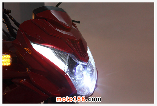 全車(包括位置燈,轉向燈,尾燈)甄選與奔馳S600最新款同檔次燈具,國家發明專利,國家新型使用專利,國內首款符合歐洲標準的全LED模塊大燈。發光強度大于30000cd,光照亮度及遠度是普通摩托車的兩倍,絕對的高科技!